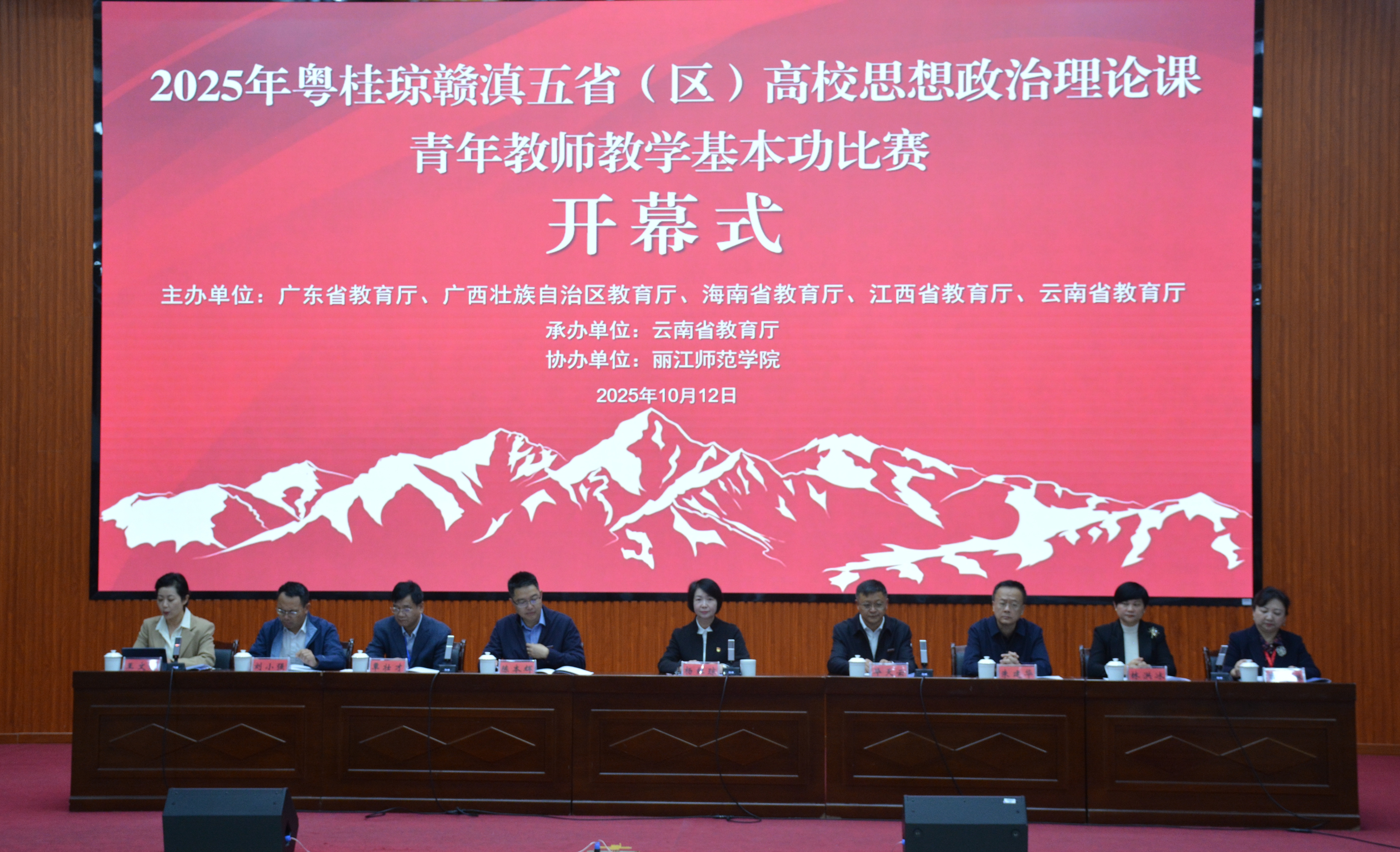 金秋十月,硕果盈枝。今天,我们齐聚在玉龙山下、金沙江畔的丽江师范学院,举办2025年粤桂琼赣滇五省(区)高校思政课青年教师教学基本功比赛,共叙友情、共话改革、共谋发展。首先,我谨代表丽江师范学院全体师生,向莅临本次比赛的各位领导、各位专家评委、各位参赛选手、各位观摩老师表示最热烈的欢迎!向长期以来关心、支持、帮助我校建设发展的各位领导、各兄弟院校、各位同仁表示最衷心的感谢!