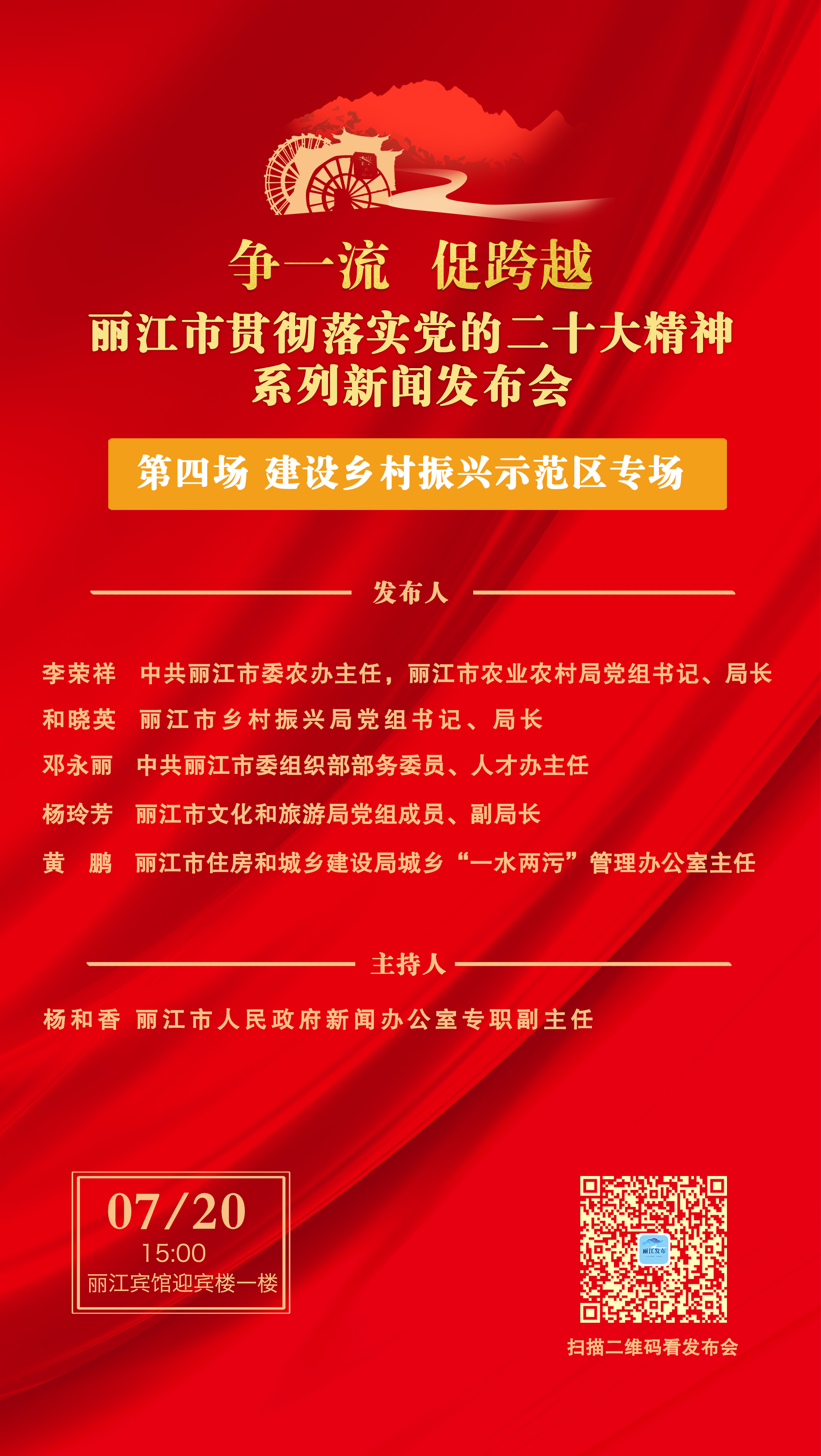 名称:“争一流、促跨越”——丽江市贯彻落实党的二十大精神系列新闻发布会(第四场 建设乡村振兴示范区专场)