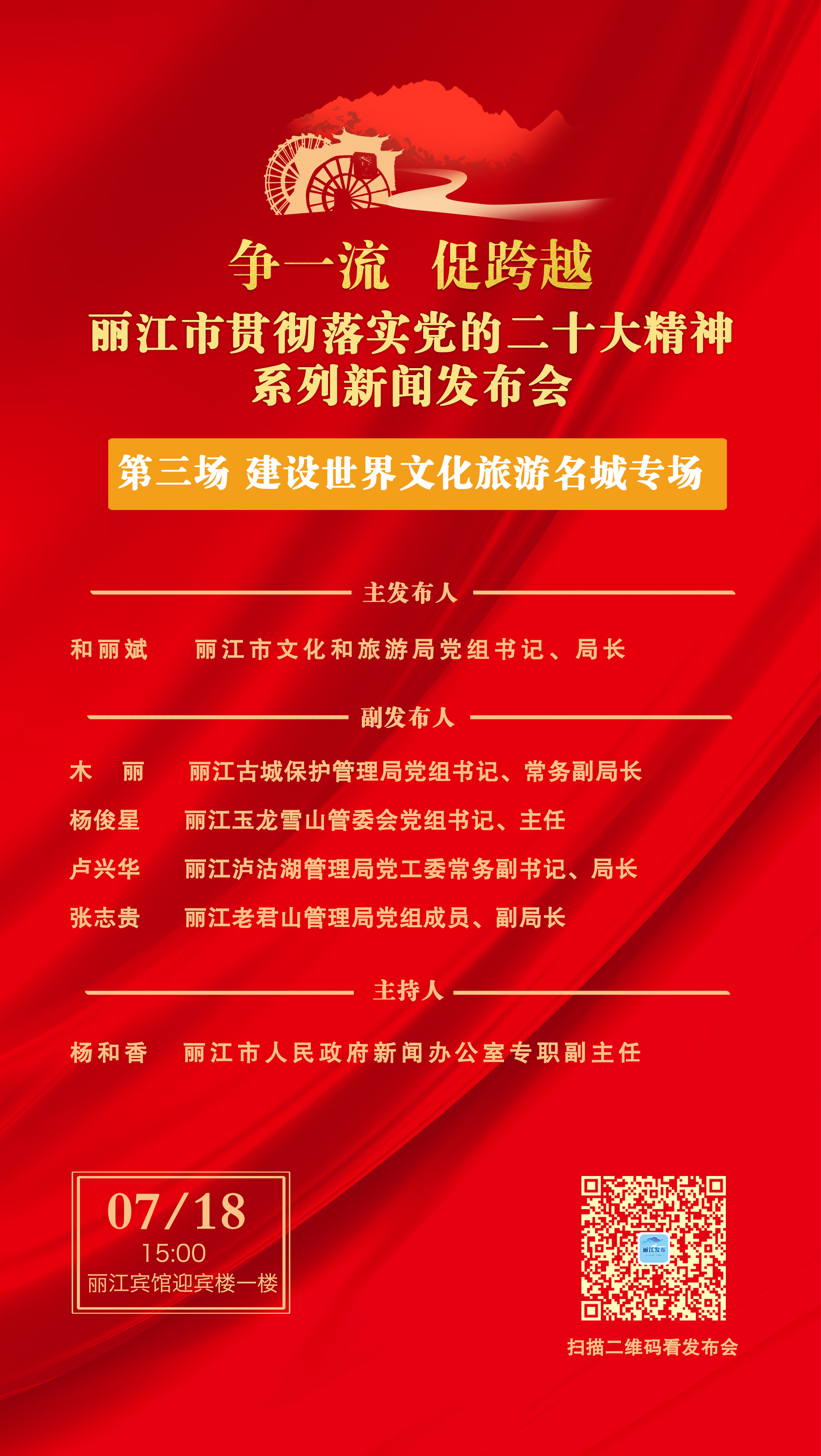名称:争一流 促跨越——丽江市贯彻落实党的二十大精神系列新闻发布会(第三场 建设世界文化旅游名城专场)