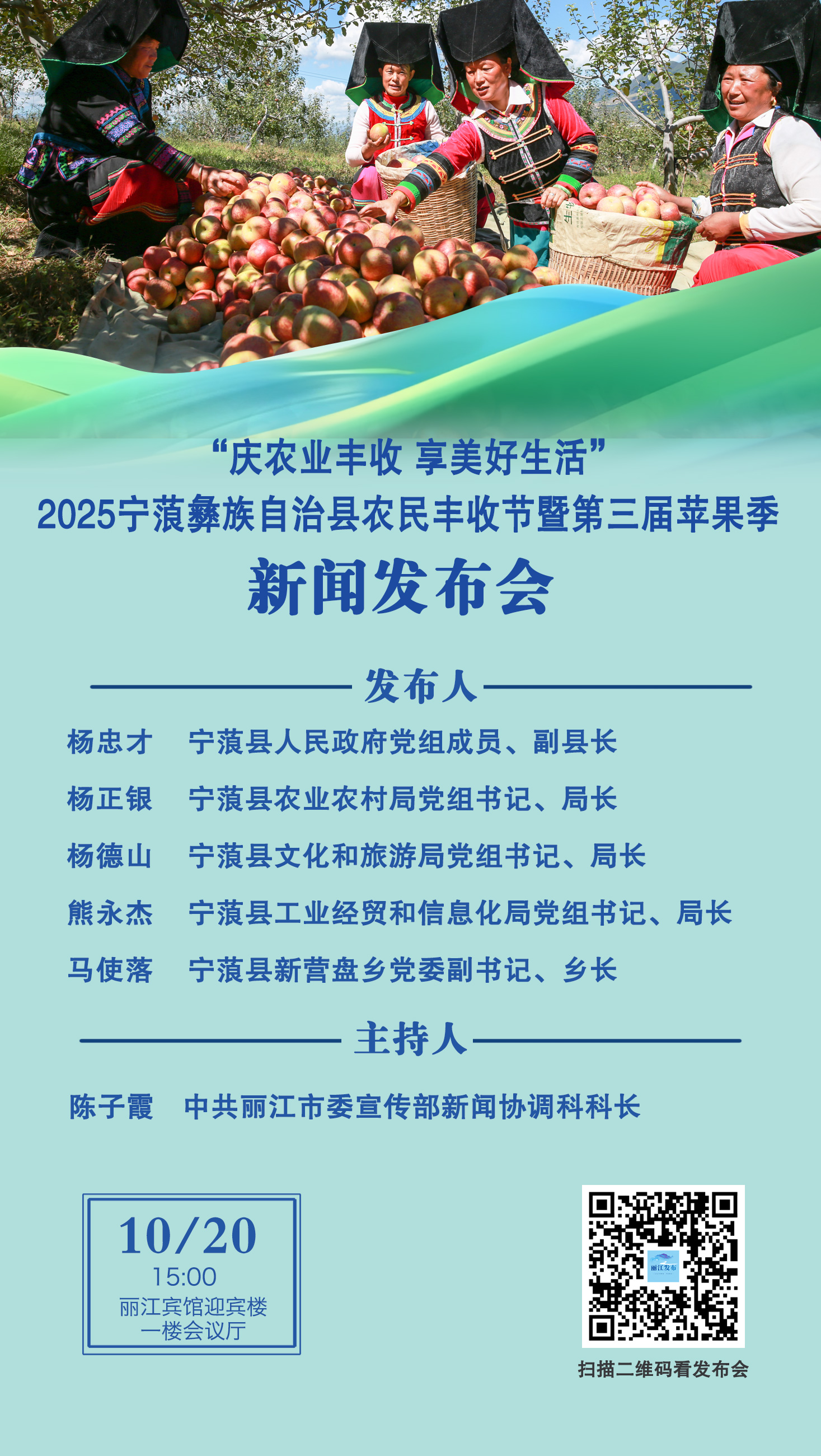 名称:“庆农业丰收 享美好生活” 2025宁蒗彝族自治县农民丰收节暨第三届苹果季新闻发布会